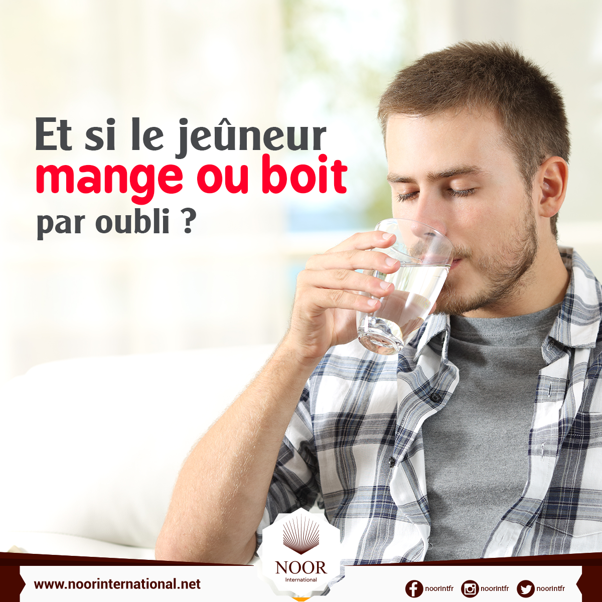 Le jeûne de qui l’interrompt en mangeant ou buvant par oubli est valable d’après la plupart des jurisconsultes. Cependant dès qu’il se rappelle ou qu’il lui est rappelé qu’il jeûne, il doit se reprendre et continuer à jeûner.
