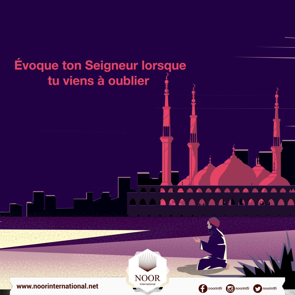Ne dis jamais à propos de quelque chose que tu projettes de faire: Je ferai ceci demain, sans poser comme condition qu’Allah le veuille, en disant par exemple: Je ferai ceci demain `in châ`a Llâhu (si Allah le veut). Si tu oublies de prononcer cette formule, prononce-la dès que tu te rends compte l’avoir oubliée et évoque Allah, car l’évocation d’Allah éloigne l’oubli.
