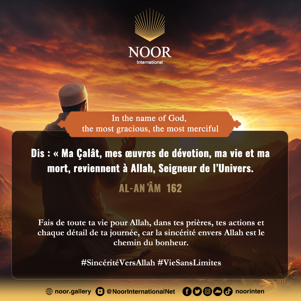 Fais de toute ta vie pour Allah, dans tes prières, tes actions et chaque détail de ta journée, car la sincérité envers Allah est le chemin du bonheur. #SincéritéVersAllah #VieSansLimites