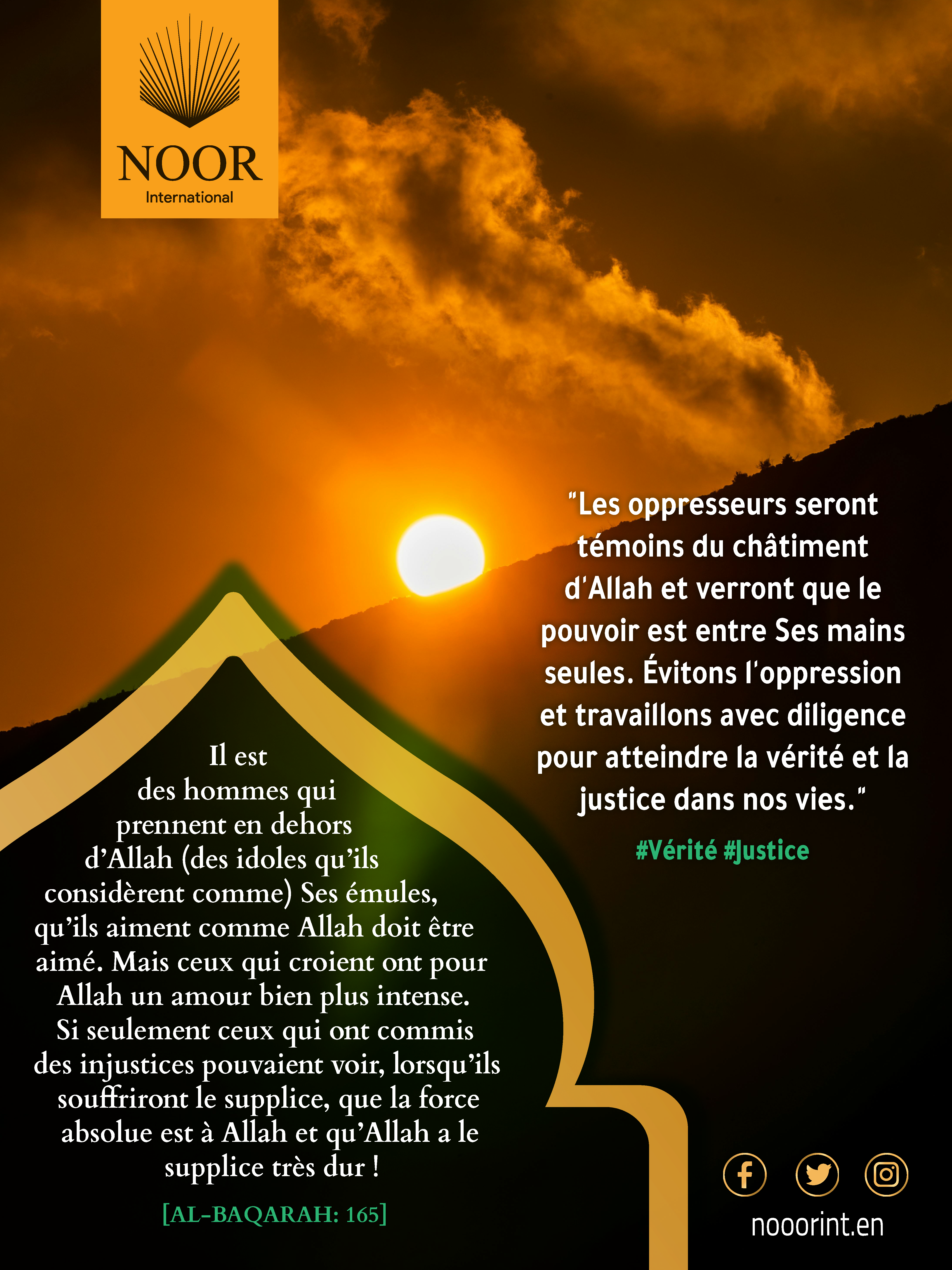 Les oppresseurs seront témoins du châtiment d'Allah et verront que le pouvoir est entre Ses mains seules. Évitons l'oppression et travaillons avec diligence pour atteindre la vérité et la justice dans nos vies." #Vérité #Justice