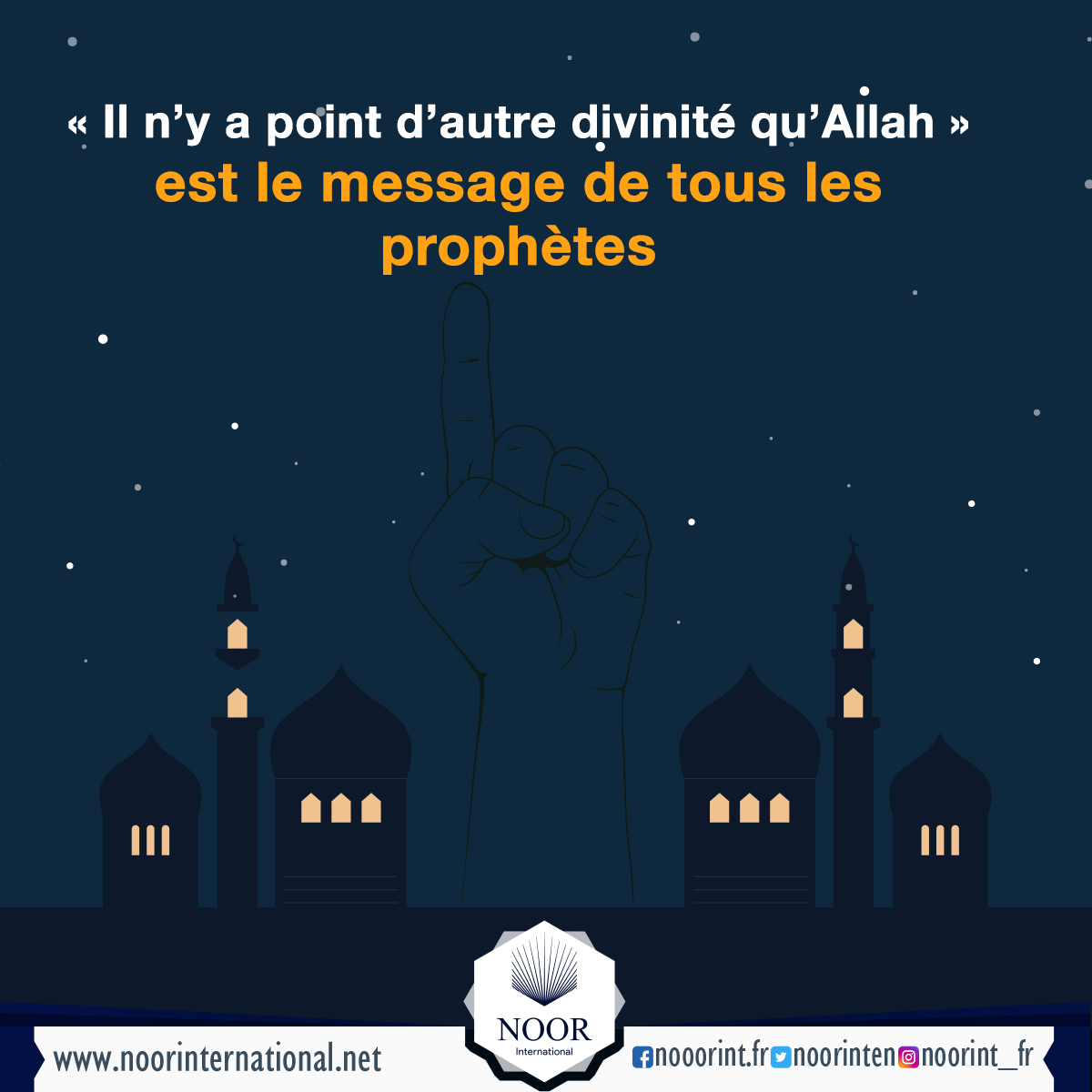 Allah, exalté soit-Il, a dit: 25-Nous n’avons envoyé aucun Messager avant toi sans que Nous ne Lui ayons fait la révélation que voici : « Il n’y a point d’autre divinité que Moi. Adorez-Moi donc. »