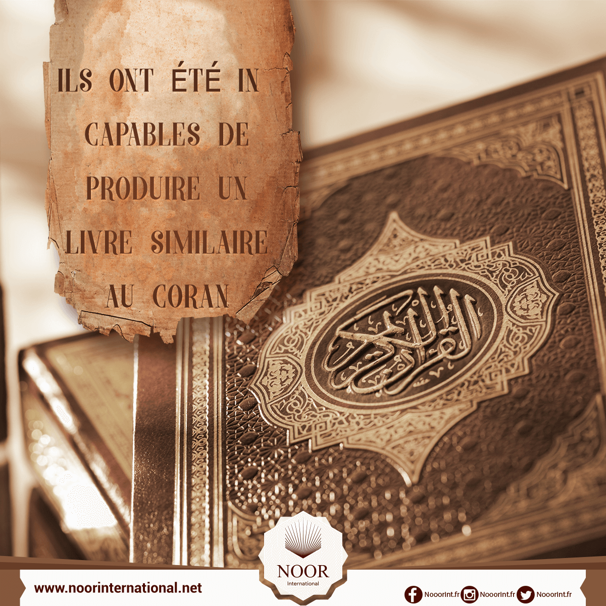 , et que les gens doués d'éloquence et maîtres de la magie du verbe n'aient pas été rares dans la Péninsule arabique , il ne s'en n'est pas trouvé un seul pour produire quoi que ce soit qui égale le Coran. Ils ont combattu le Prophète par les armes, mais ont été incapables d'égaler la transcendance coranique. »