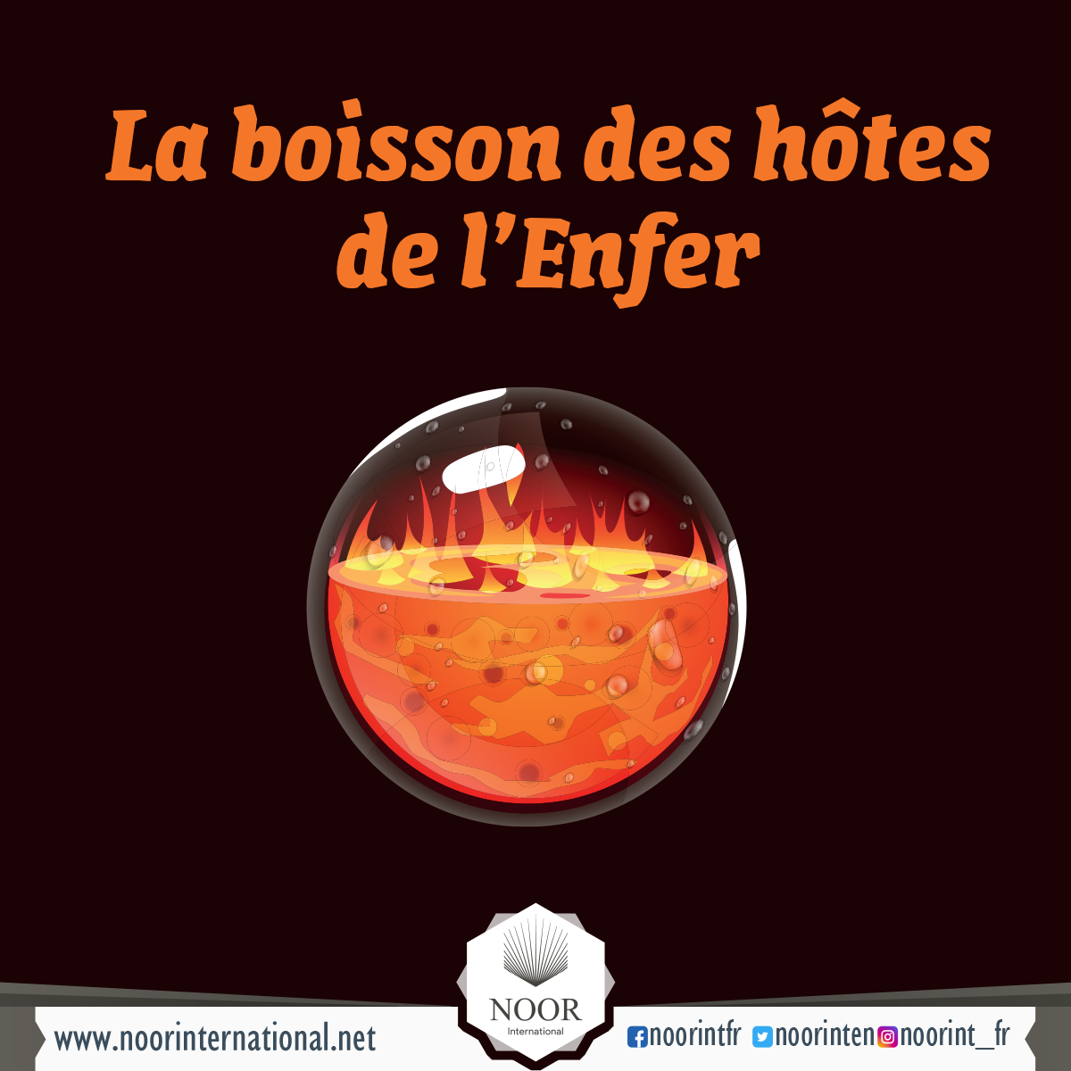 Ce qui sera donné à boire aux hôtes de l’Enfer sera une eau purulente et rouillée, extrêmement chaude. Celui qui l’approchera de son visage l’en trouvera brûlé ; et quand il en boira, elle déchirera ses entrailles.