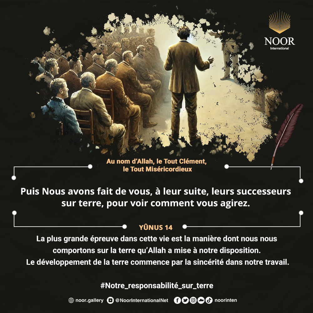 La plus grande épreuve dans cette vie est la manière dont nous nous comportons sur la terre qu’Allah a mise à notre disposition. Le développement de la terre commence par la sincérité dans notre travail.