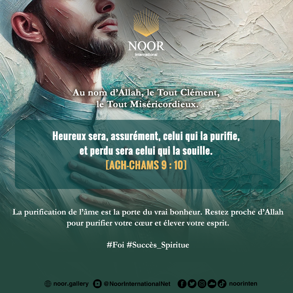 La purification de l’âme est la porte du vrai bonheur. Restez proche d’Allah pour purifier votre cœur et élever votre esprit. #Foi #Succès_Spirituel