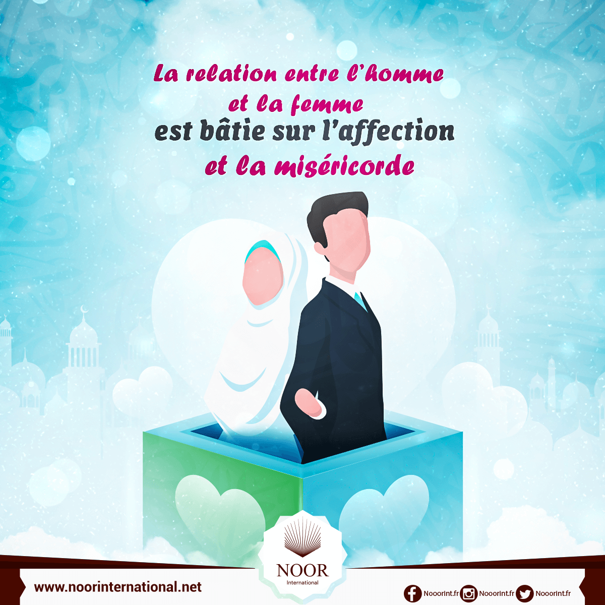 Allah, exalté soit-Il, a dit: 21-Et l’un de Ses Signes encore est d’avoir créé pour vous, et à partir de vous, des épouses auprès desquelles vous trouvez calme et repos. Il a établi entre vous deux affection et pitié. Il y a certes là des Signes pour des gens qui savent réfléchir.