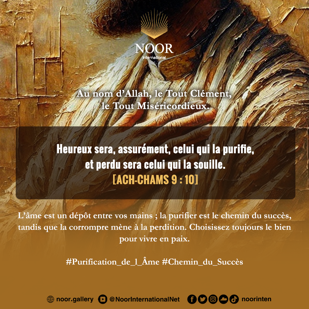 L’âme est un dépôt entre vos mains ; la purifier est le chemin du succès, tandis que la corrompre mène à la perdition. Choisissez toujours le bien pour vivre en paix. #Purification_de_l_Âme #Chemin_du_Succès