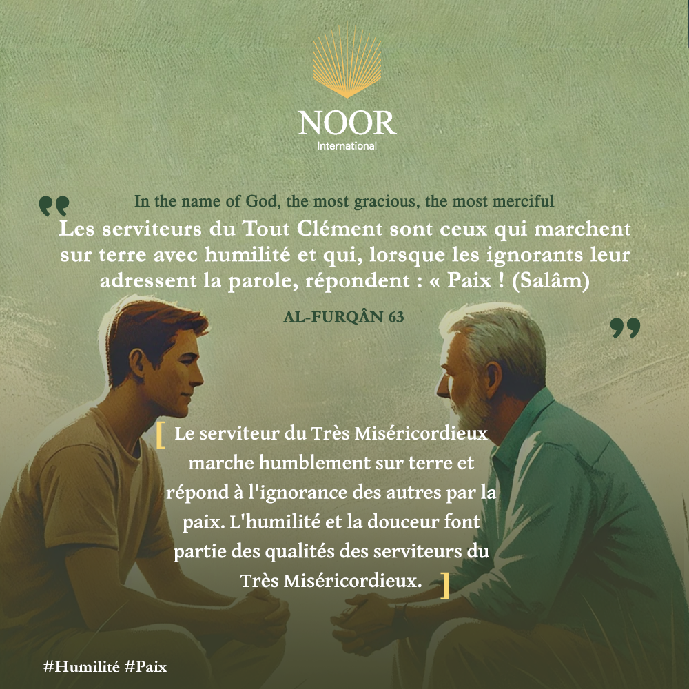 Le serviteur du Très Miséricordieux marche humblement sur terre et répond à l'ignorance des autres par la paix. L'humilité et la douceur font partie des qualités des serviteurs du Très Miséricordieux. #Humilité #Paix