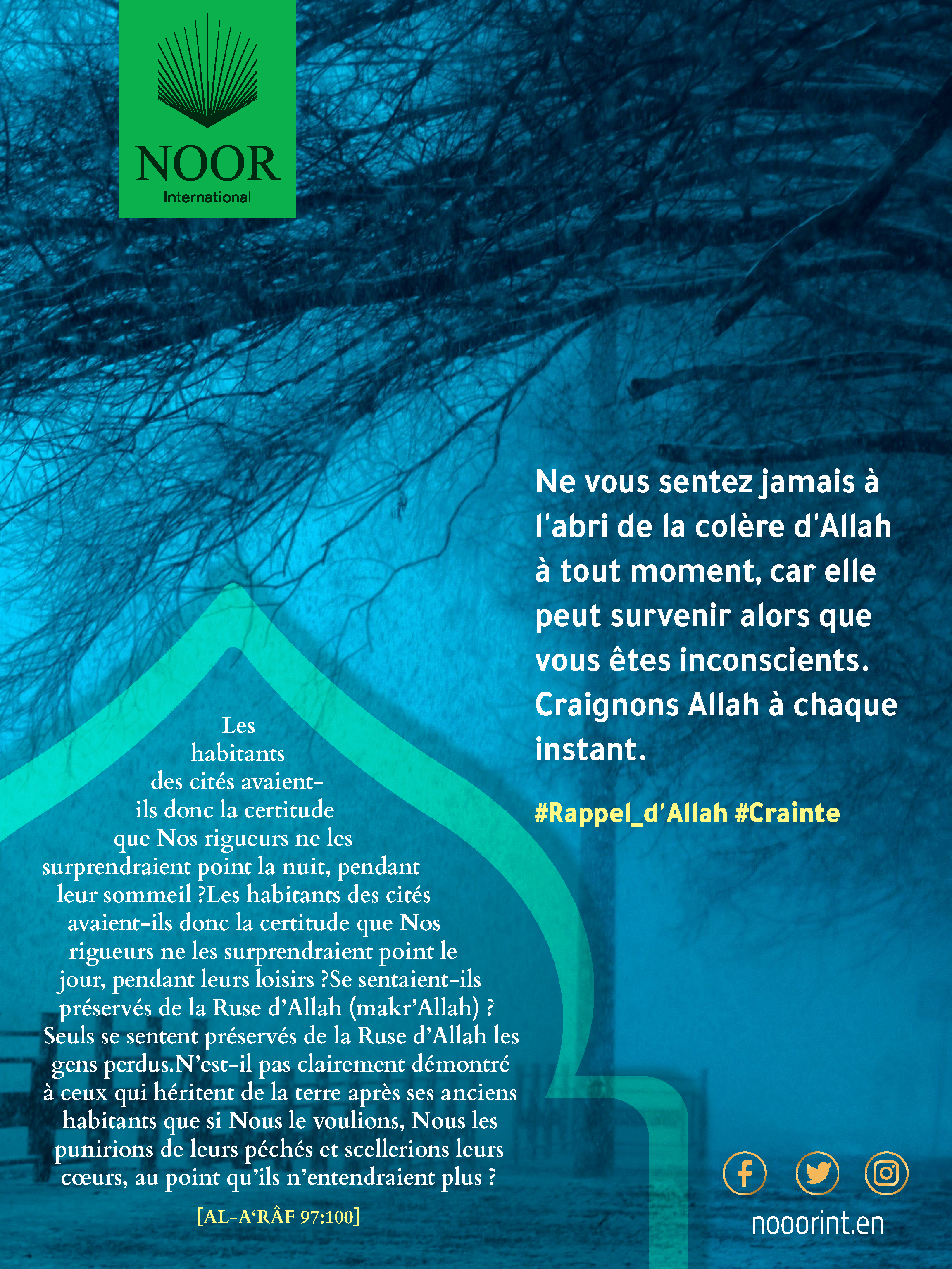 Ne vous sentez jamais à l'abri de la colère d'Allah à tout moment, car elle peut survenir alors que vous êtes inconscients. Craignons Allah à chaque instant. #Rappel_d'Allah #Crainte