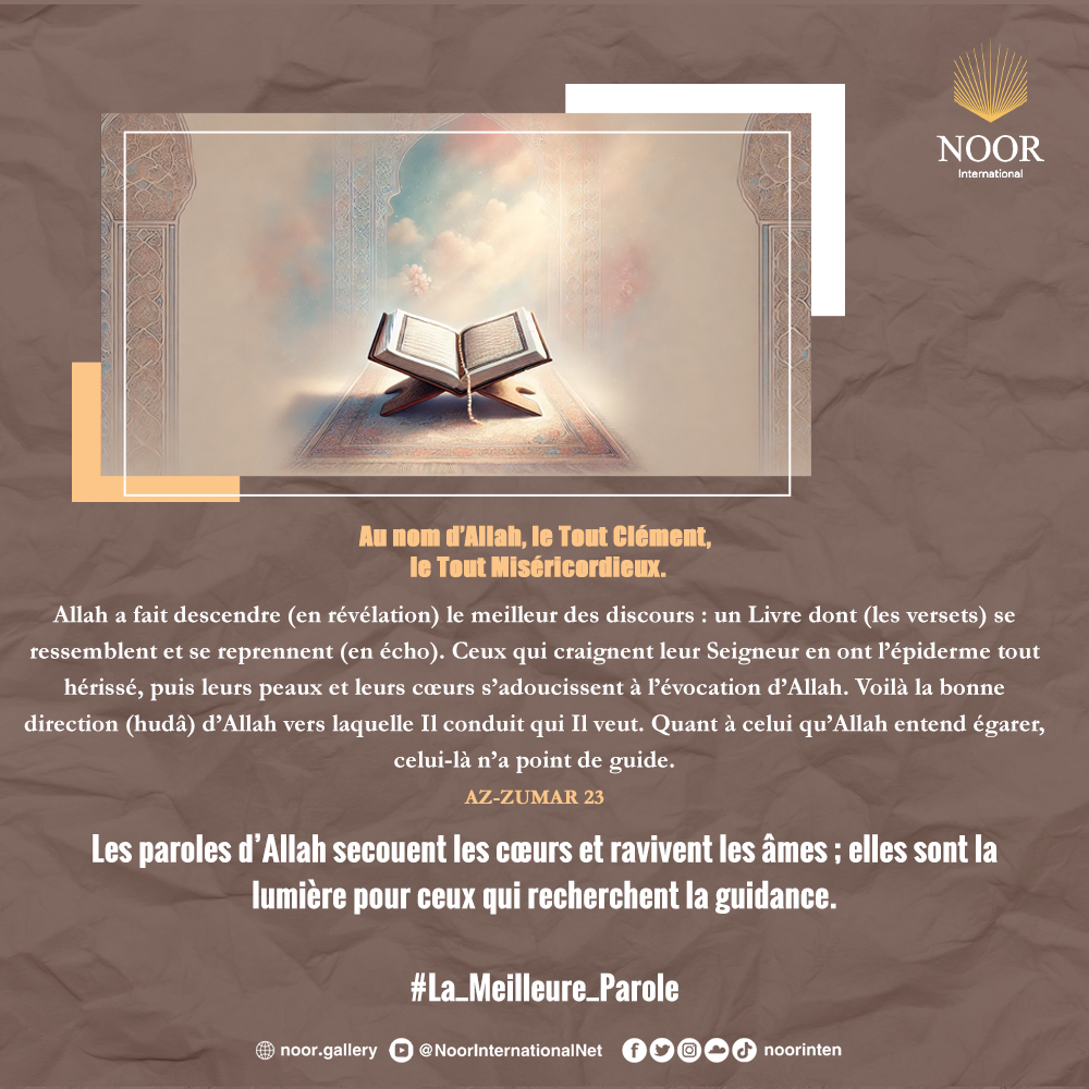 Les paroles d’Allah secouent les cœurs et ravivent les âmes ; elles sont la lumière pour ceux qui recherchent la guidance. #La_Meilleure_Parole