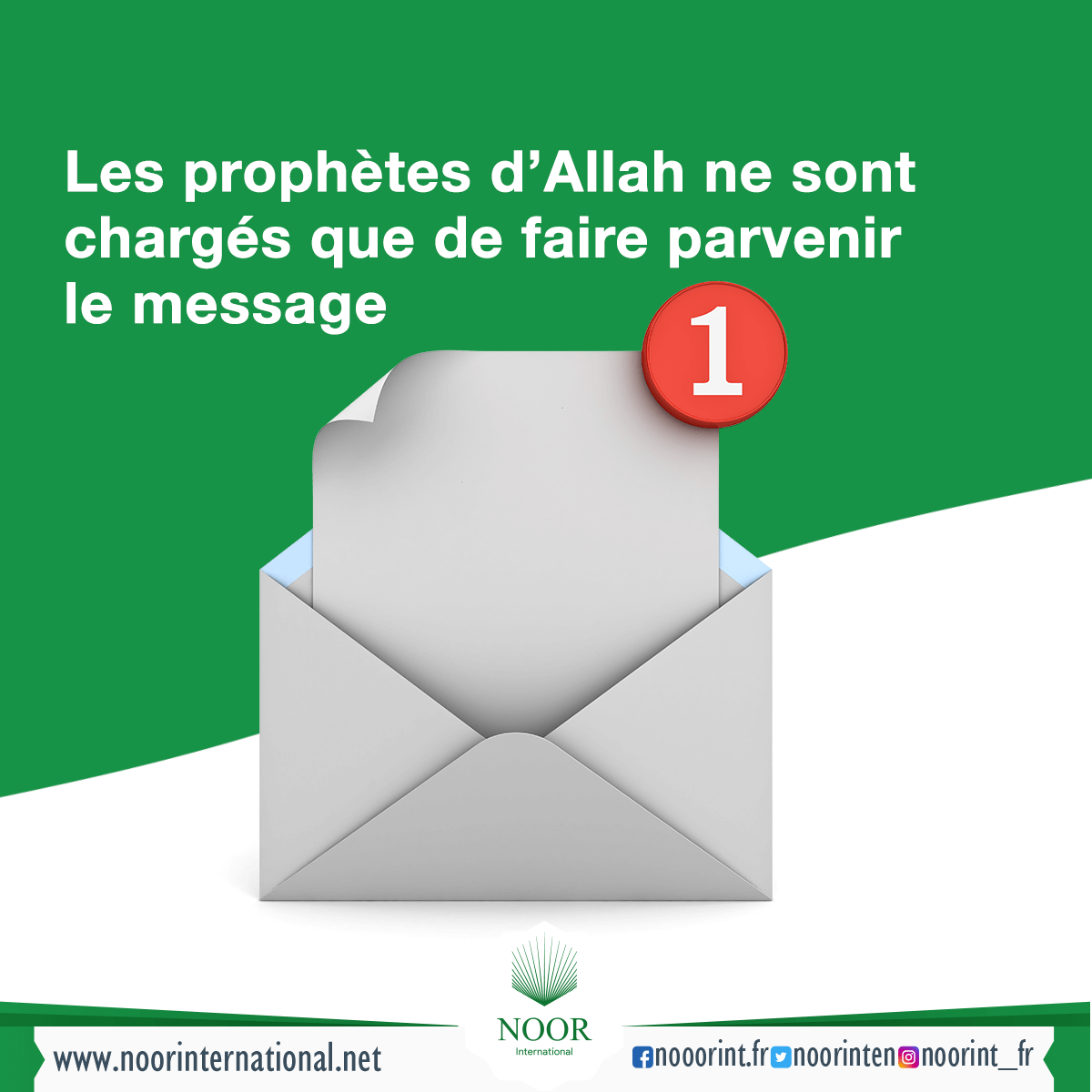 Tous les prophètes ne sont chargés que de transmettre le message d’Allah qui est celui de l’Unicité divine et de ne pas Lui associer quoi que ce soit. Ce sont des êtres humains comme les autres mais à qui Allah a fait une révélation