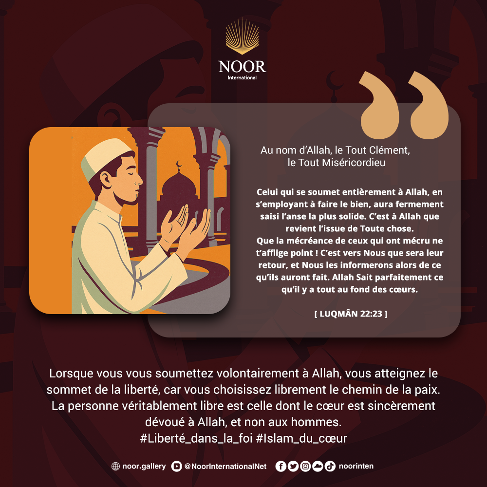 Lorsque vous vous soumettez volontairement à Allah, vous atteignez le sommet de la liberté, car vous choisissez librement le chemin de la paix.