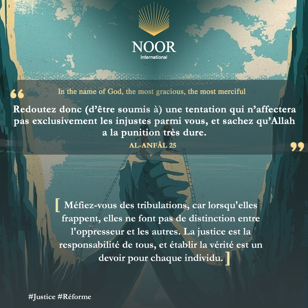 Méfiez-vous des tribulations, car lorsqu'elles frappent, elles ne font pas de distinction entre l'oppresseur et les autres. La justice est la responsabilité de tous, et établir la vérité est un devoir pour chaque individu. #Justice #Réforme