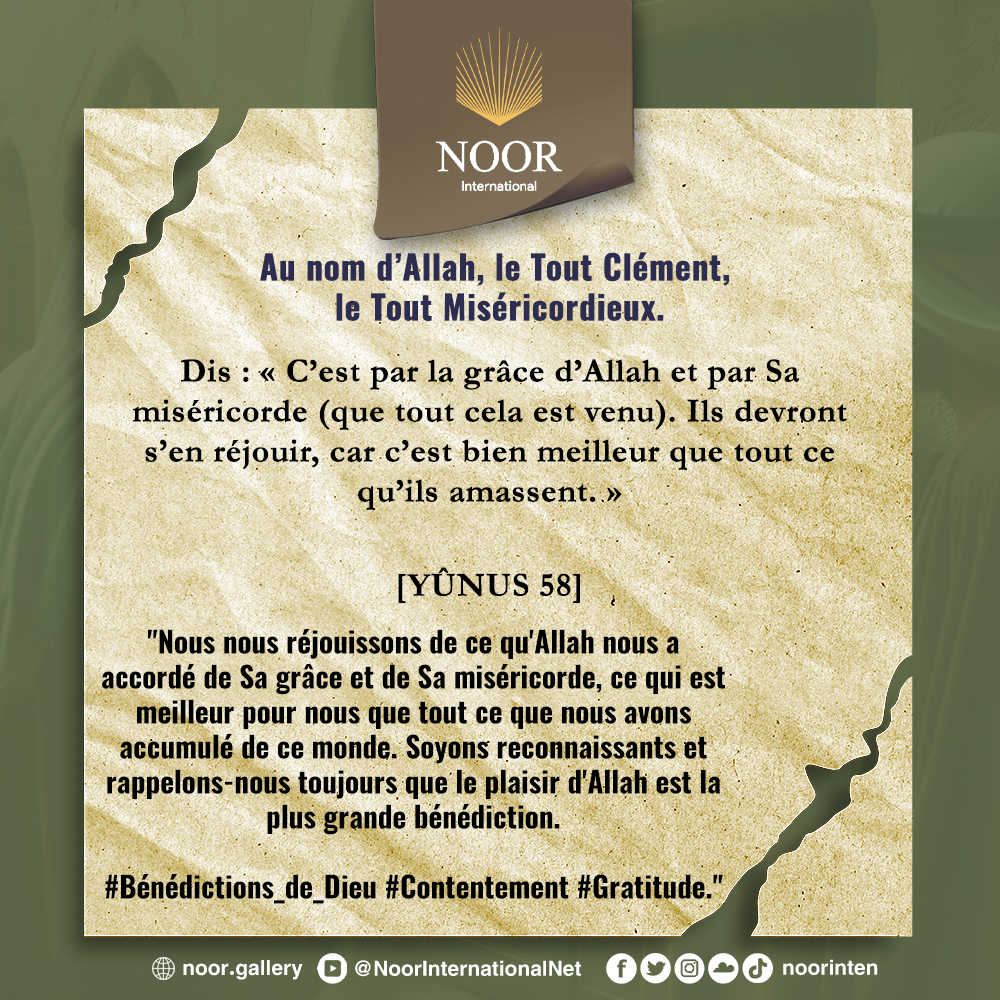Nous nous réjouissons de ce qu'Allah nous a accordé de Sa grâce et de Sa miséricorde, ce qui est meilleur pour nous que tout ce que nous avons accumulé de ce monde. Soyons reconnaissants et rappelons-nous toujours que le plaisir d'Allah est la plus grande bénédiction. #Bénédictions_de_Dieu #Contentement #Gratitude"