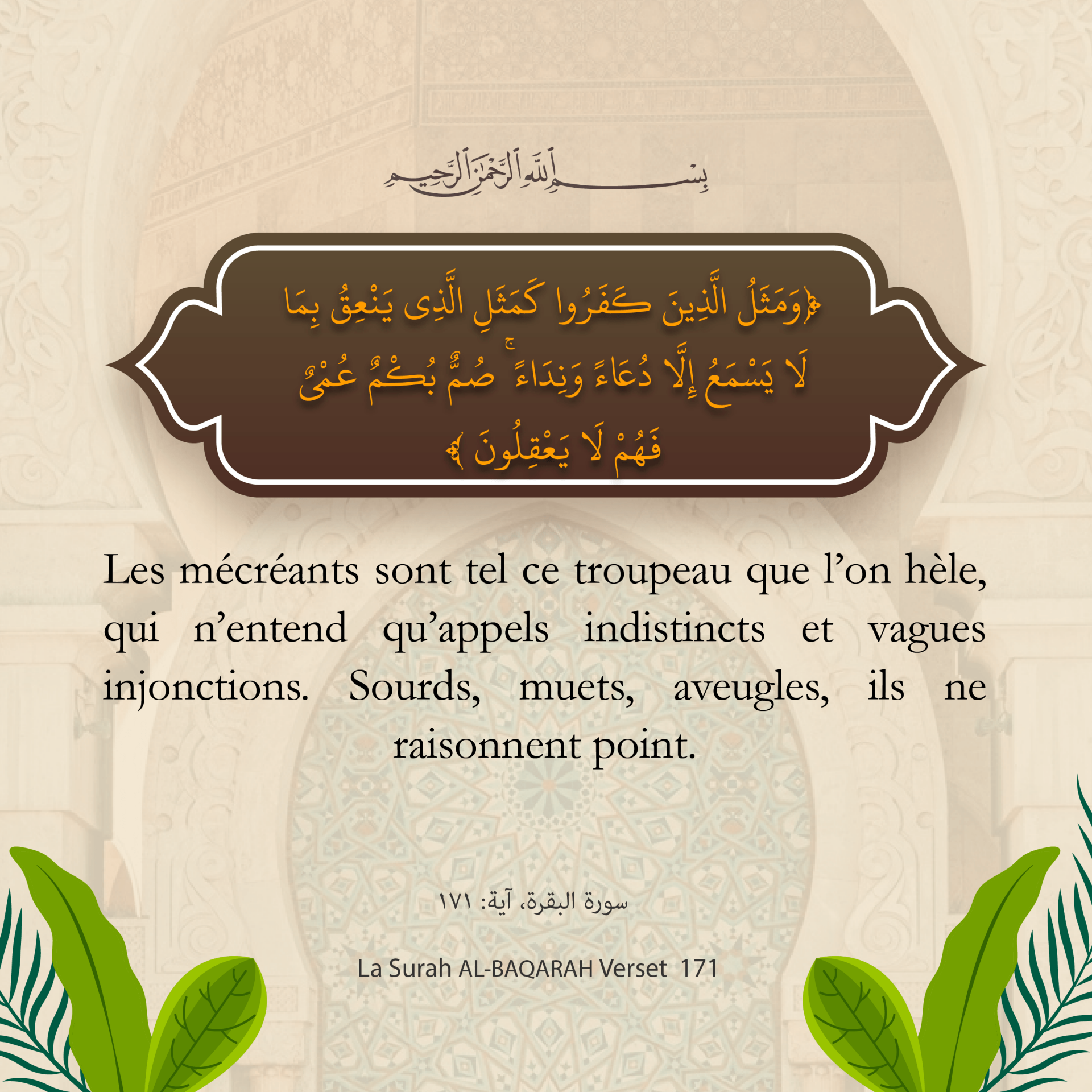 Les mécréants sont tel ce troupeau que l’on hèle, qui n’entend qu’appels indistincts et vagues injonctions. Sourds, muets, aveugles, ils ne raisonnent point.