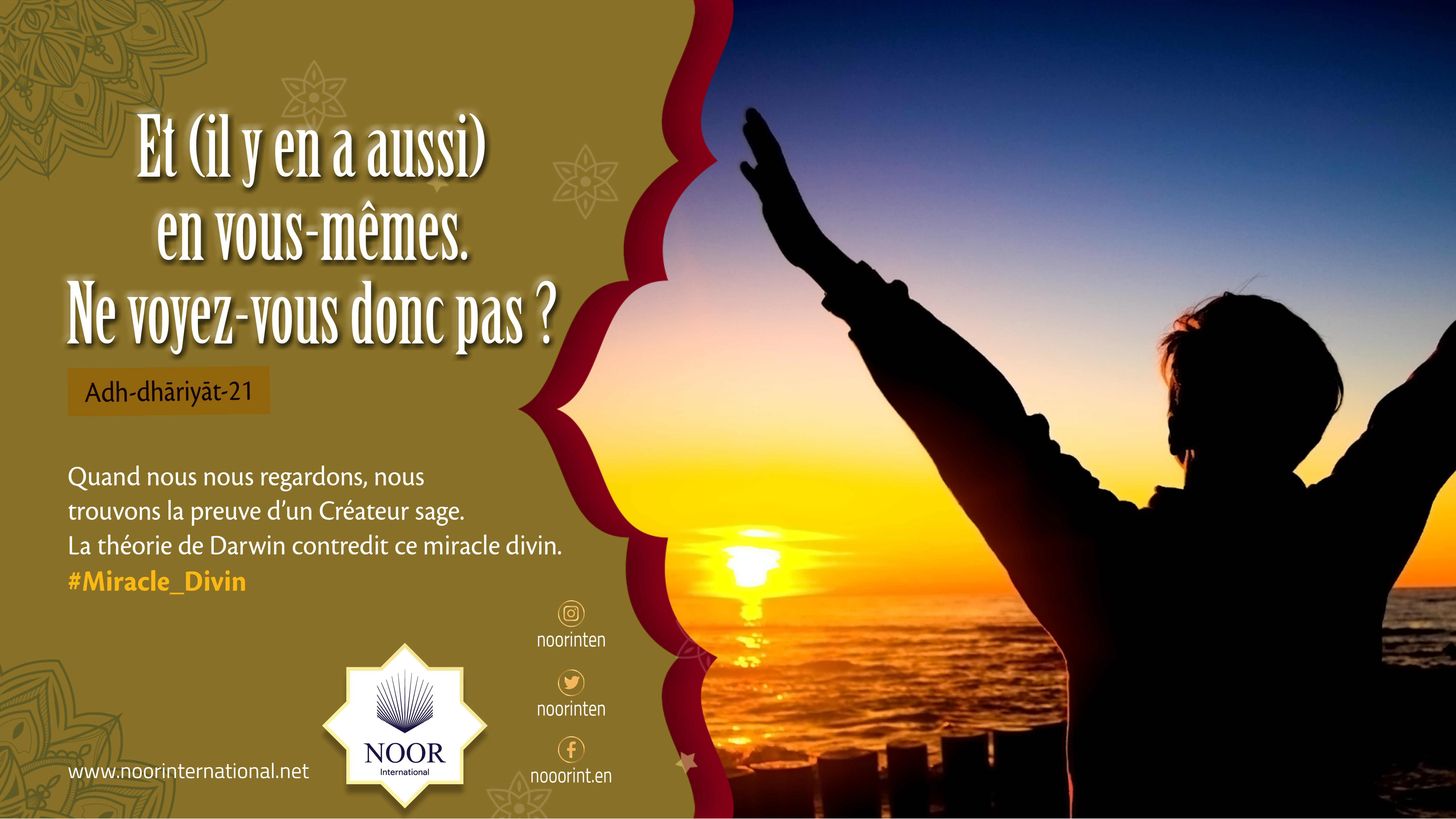 Et (il y en a aussi) en vous-mêmes. Ne voyez-vous donc pas ?(ADH-DHĀRIYĀT-21)