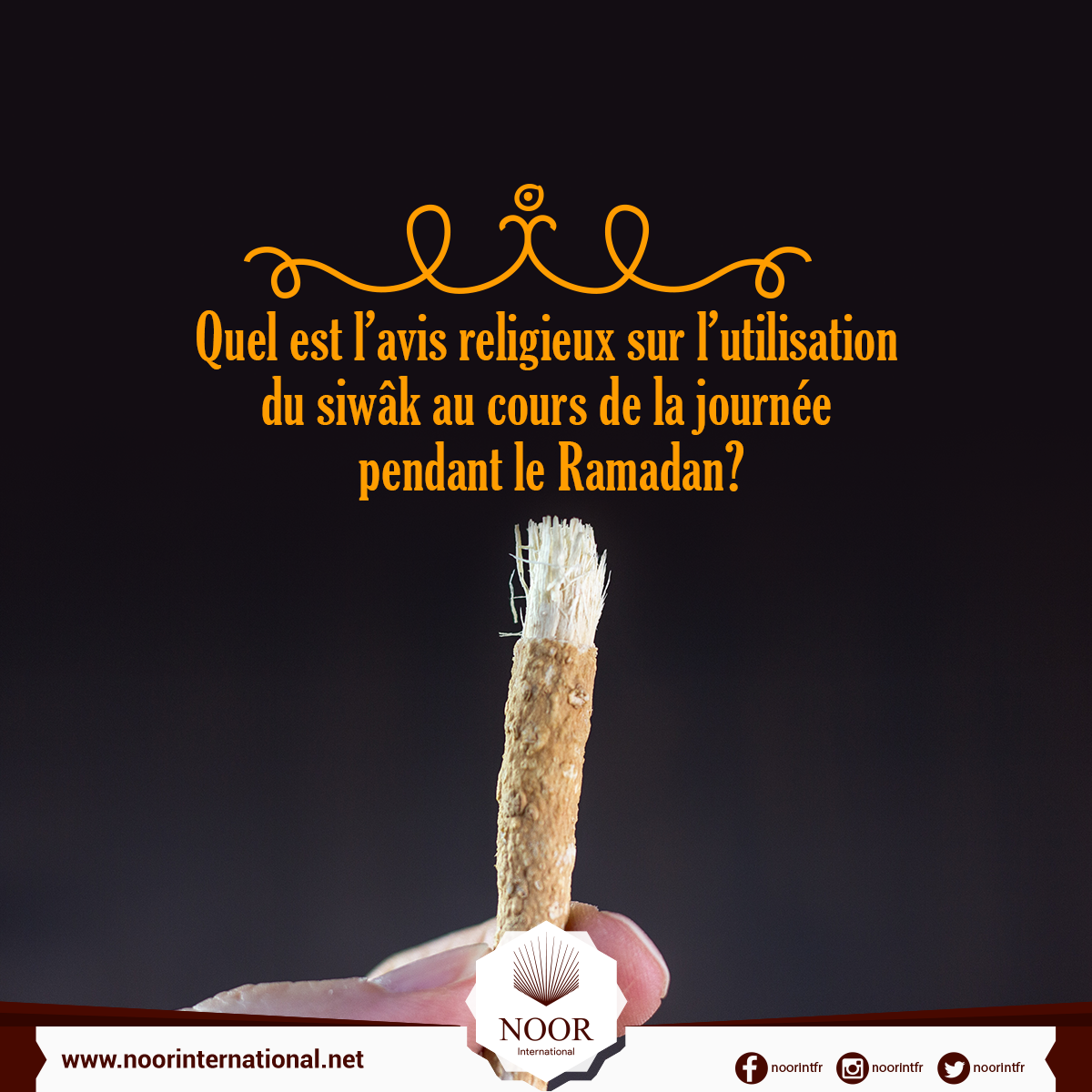« Le Prophète, que le salut et la bénédiction d’Allah soient sur lui, a dit : «Le siwâk est une hygiène de la bouche et est agréée par le Seigneur.»