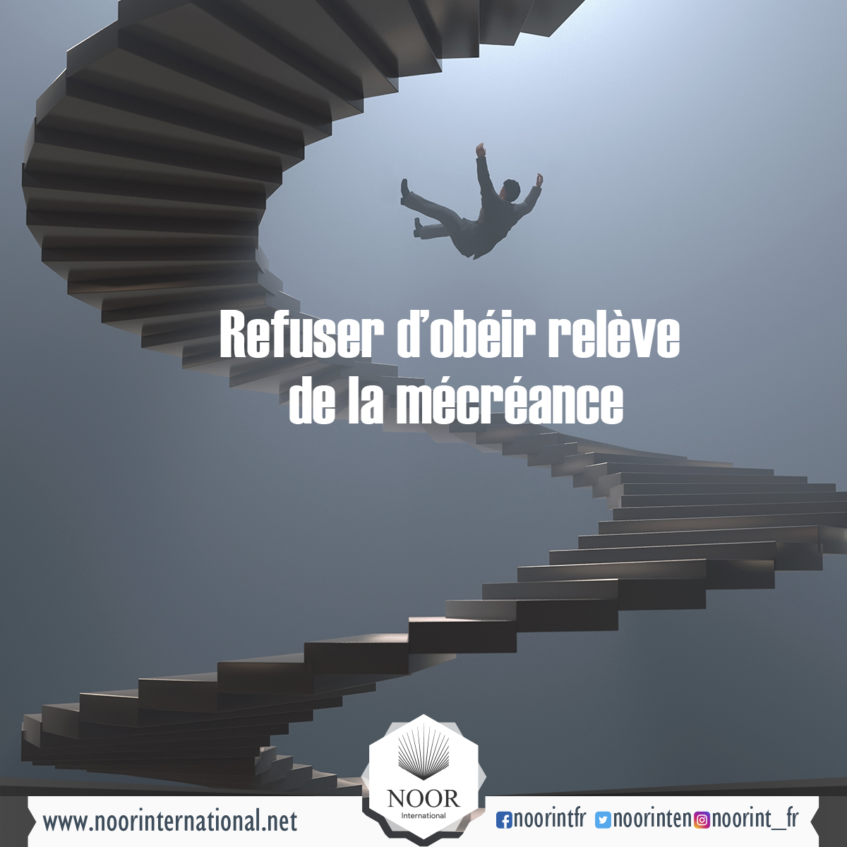 Celui qui refuse d’obéir se trouve en état de mécréance. Si son refus concerne tous les commandements, sa mécréance alors le fait sortir de l’islam. Si son refus concerne certains commandements uniquement, il reste musulman.