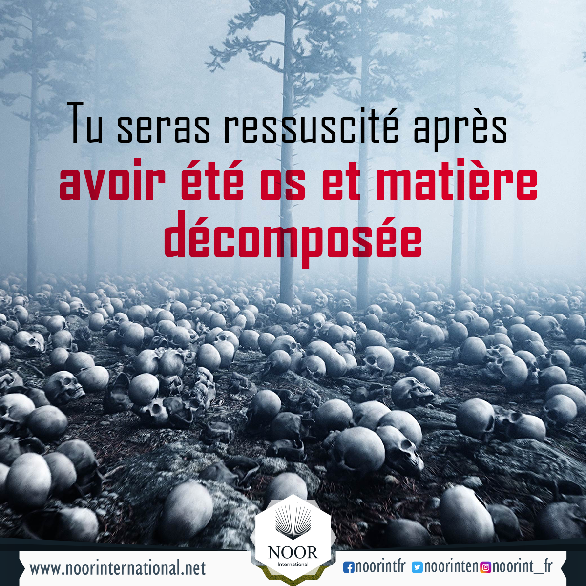 Après la période où ne serons qu’os et matière décomposée, Allah, le Tout-Puissant, exalté soit-Il, nous ramènera à la vie pour rendre compte et être jugés.
