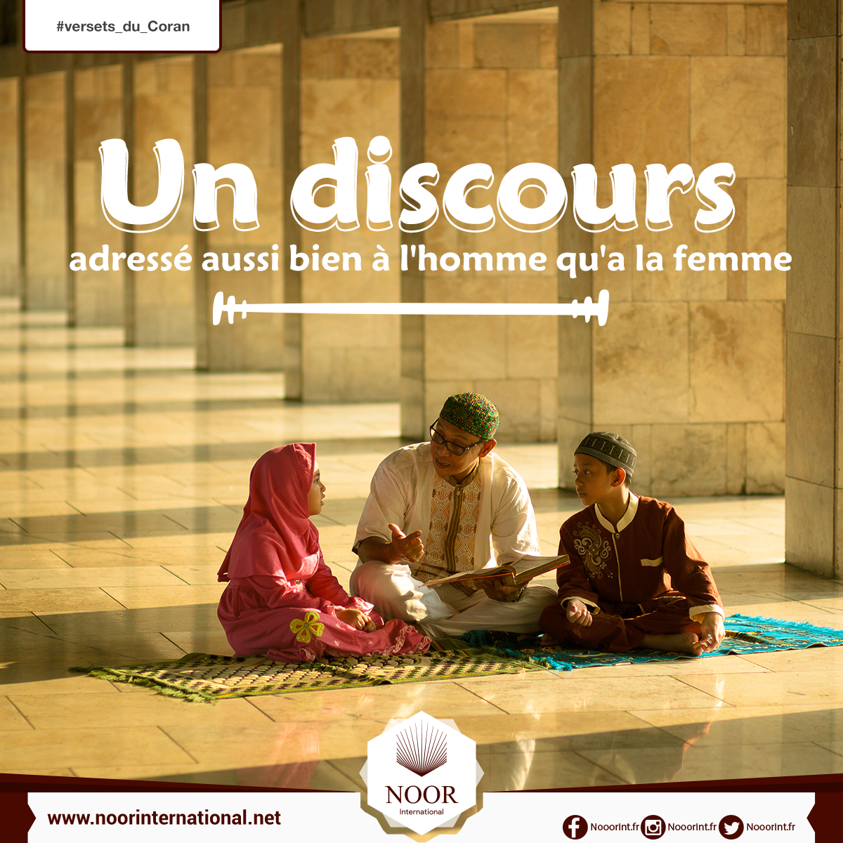 Le Coran se caractérise par le fait qu'il s'adresse aussi bien aux hommes qu'aux femmes en leur assignant les mêmes tâches et en leur promettant la même récompense. Il y a des versets coraniques, ou lême des sourates entières consacrées aux droits des femmes et des choses qui les concernent.