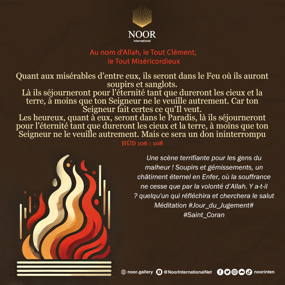 Une scène terrifiante pour les gens du malheur ! Soupirs et gémissements, un châtiment éternel en Enfer, où la souffrance ne cesse que par la volonté d’Allah. Y a-t-il quelqu'un qui réfléchira et cherchera le salut ? #Méditation #Jour_du_Jugement #Saint_Coran