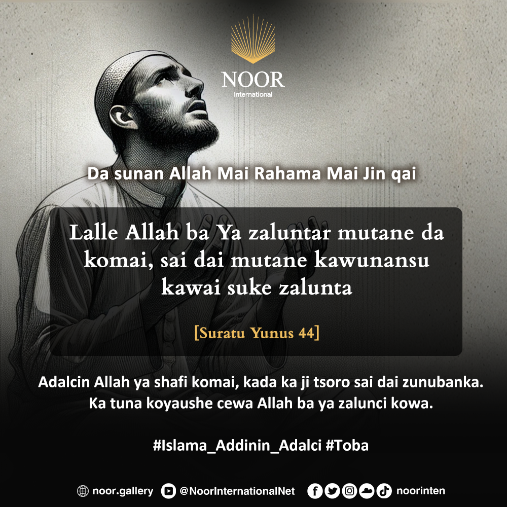 Adalcin Allah ya shafi komai, kada ka ji tsoro sai dai zunubanka. Ka tuna koyaushe cewa Allah ba ya zalunci kowa. #Islama_Addinin_Adalci #Toba