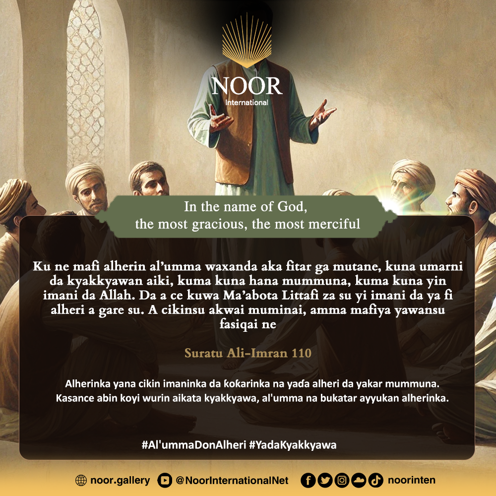 Alherinka yana cikin imaninka da ƙoƙarinka na yaɗa alheri da yakar mummuna. Kasance abin koyi wurin aikata kyakkyawa, al'umma na bukatar ayyukan alherinka. #Al'ummaDonAlheri #YadaKyakkyawa