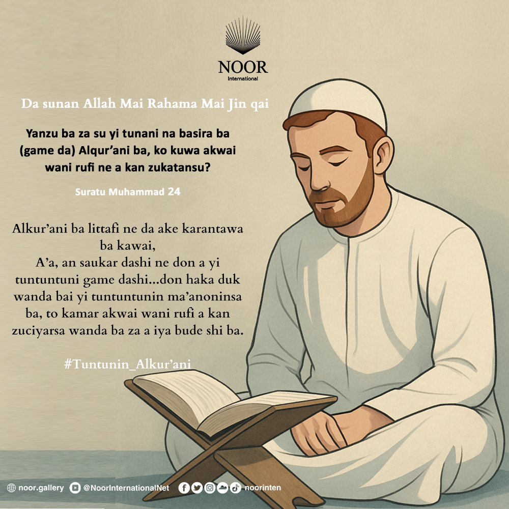 A’a, an saukar dashi ne don a yi tuntuntuni game dashi...don haka duk wanda bai yi tuntuntunin ma’anoninsa ba, to kamar akwai wani rufi a kan zuciyarsa wanda ba za a iya bude shi ba.