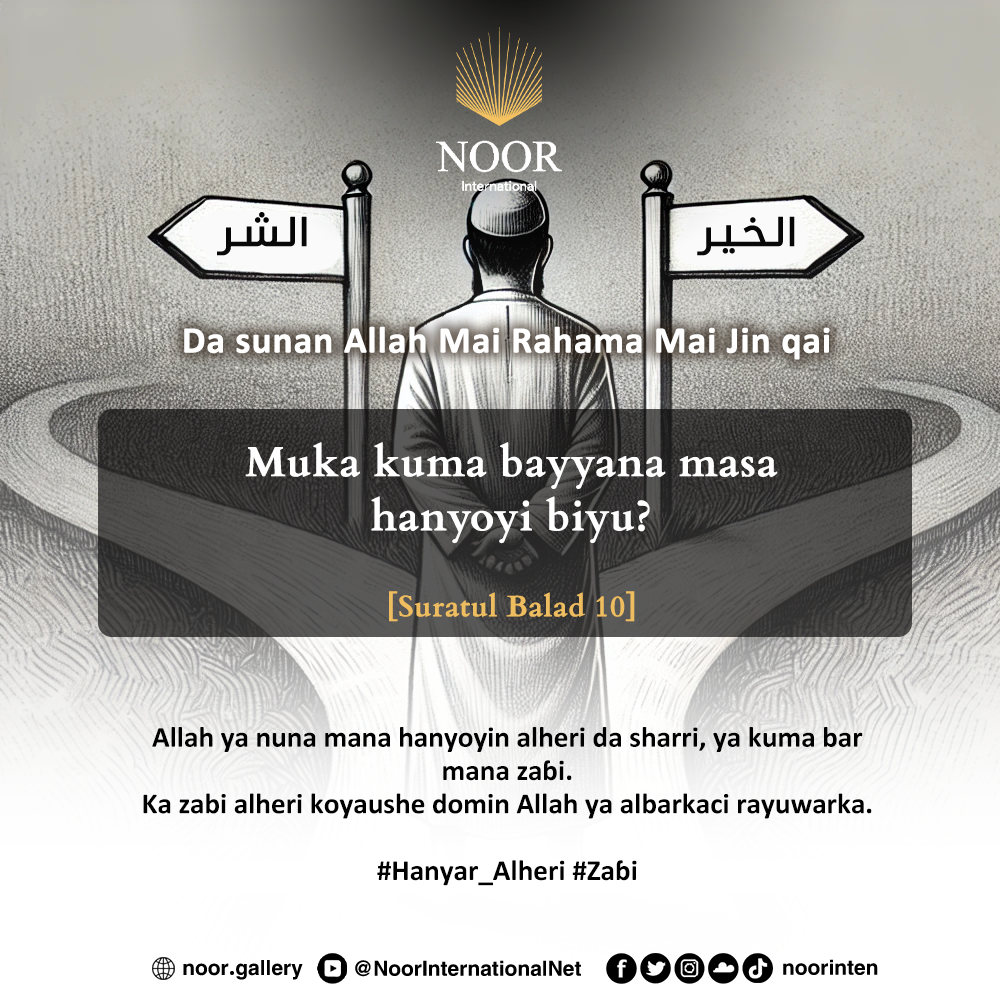 Allah ya nuna mana hanyoyin alheri da sharri, ya kuma bar mana zaɓi. Ka zabi alheri koyaushe domin Allah ya albarkaci rayuwarka. #Hanyar_Alheri #Zaɓi