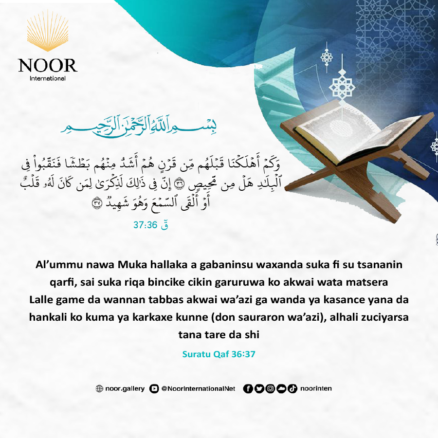 Lalle game da wannan tabbas akwai wa’azi ga wanda ya kasance yana da hankali ko kuma ya karkaxe kunne (don sauraron wa’azi), alhali zuciyarsa tana tare da shi