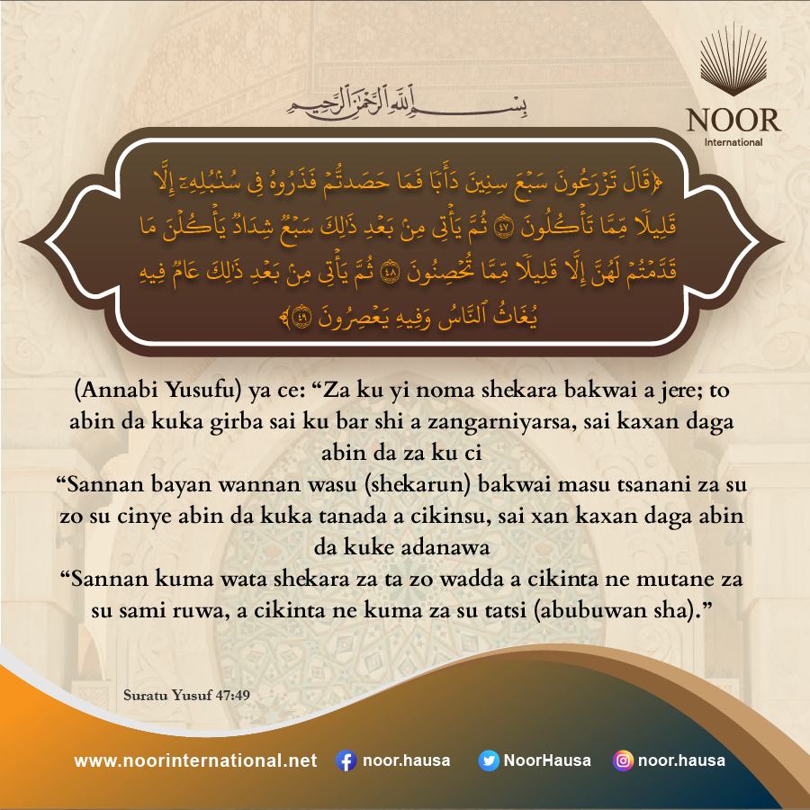 ​(Annabi Yusufu) ya ce: “Za ku yi noma shekara bakwai a jere;"