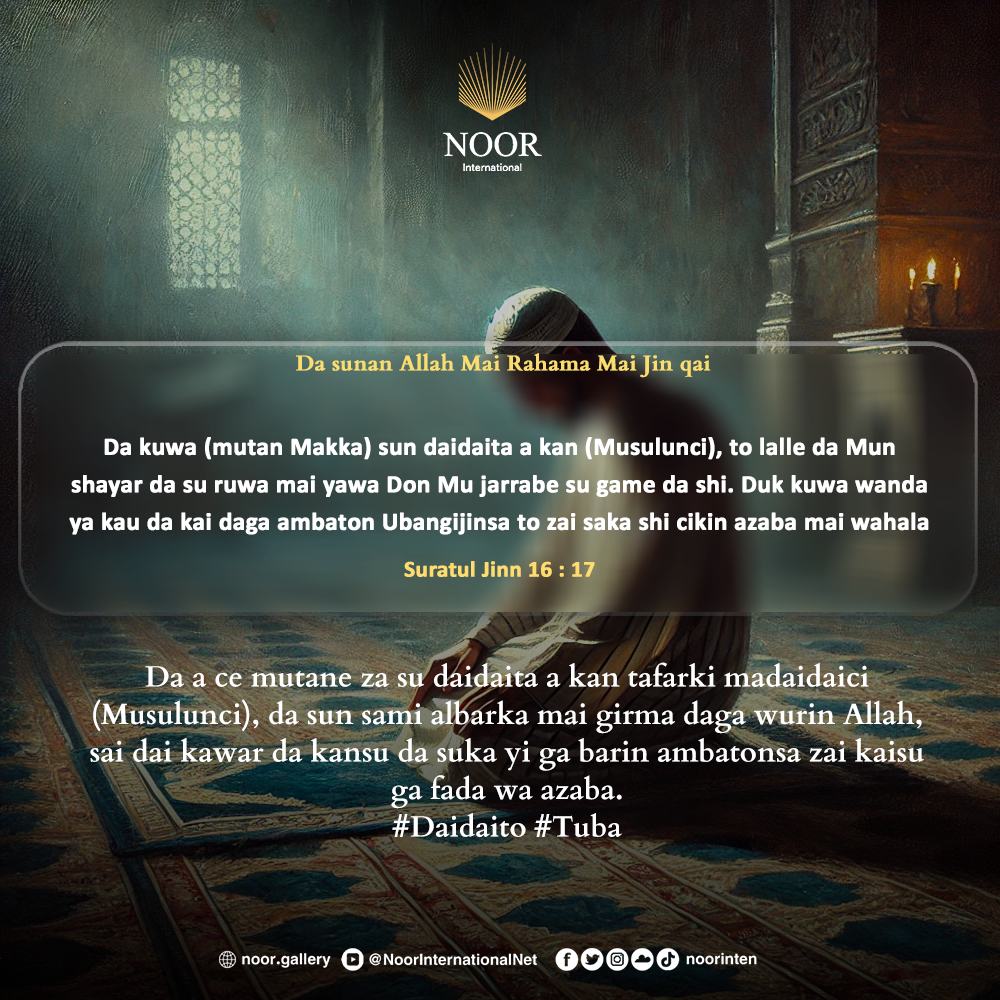 Da a ce mutane za su daidaita a kan tafarki madaidaici (Musulunci), da sun sami albarka mai girma daga wurin Allah, sai dai kawar da kansu da suka yi ga barin ambatonsa zai kaisu ga fada wa azaba.