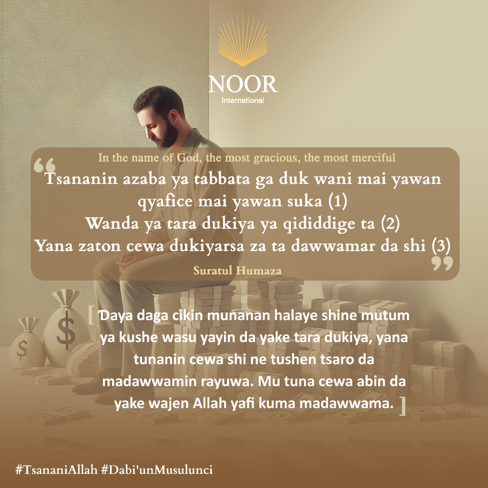 Ɗaya daga cikin munanan halaye shine mutum ya kushe wasu yayin da yake tara dukiya, yana tunanin cewa shi ne tushen tsaro da madawwamin rayuwa. Mu tuna cewa abin da yake wajen Allah yafi kuma madawwama."