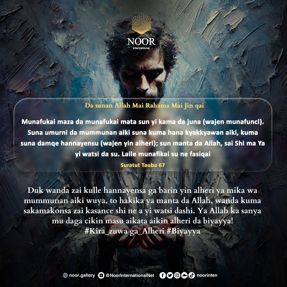 Duk wanda zai kulle hannayensa ga barin yin alheri ya mika wa mummunan aiki wuya, to hakika ya manta da Allah, wanda kuma sakamakonsa zai kasance shi ne a yi watsi dashi.