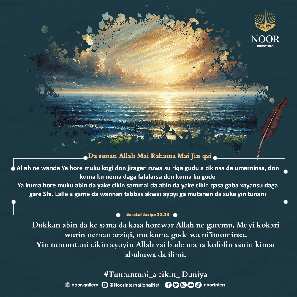 Dukkan abin da ke sama da kasa horewar Allah ne garemu. Muyi kokari wurin neman arziqi, mu kuma gode wa ni’imominsa.