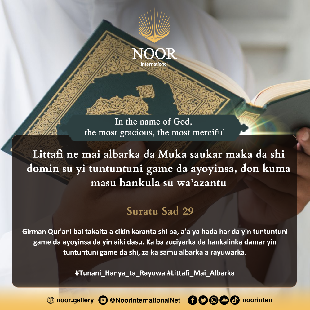 Girman Qur'ani bai takaita a cikin karanta shi ba, a’a ya hada har da yin tuntuntuni game da ayoyinsa da yin aiki dasu. Ka ba zuciyarka da hankalinka damar yin tuntuntuni game da shi, za ka samu albarka a rayuwarka. #Tunani_Hanya_ta_Rayuwa #Littafi_Mai_Albarka