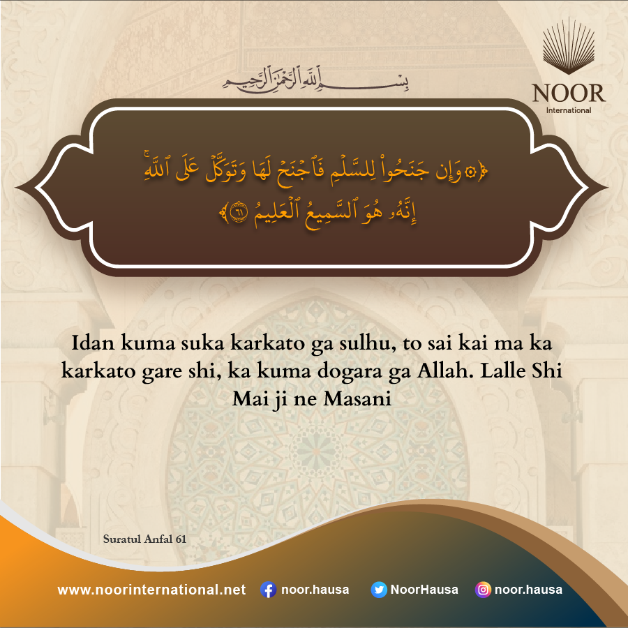 Idan kuma suka karkato ga sulhu, to sai kai ma ka karkato gare shi, ka kuma dogara ga Allah. Lalle Shi Mai ji ne Masani