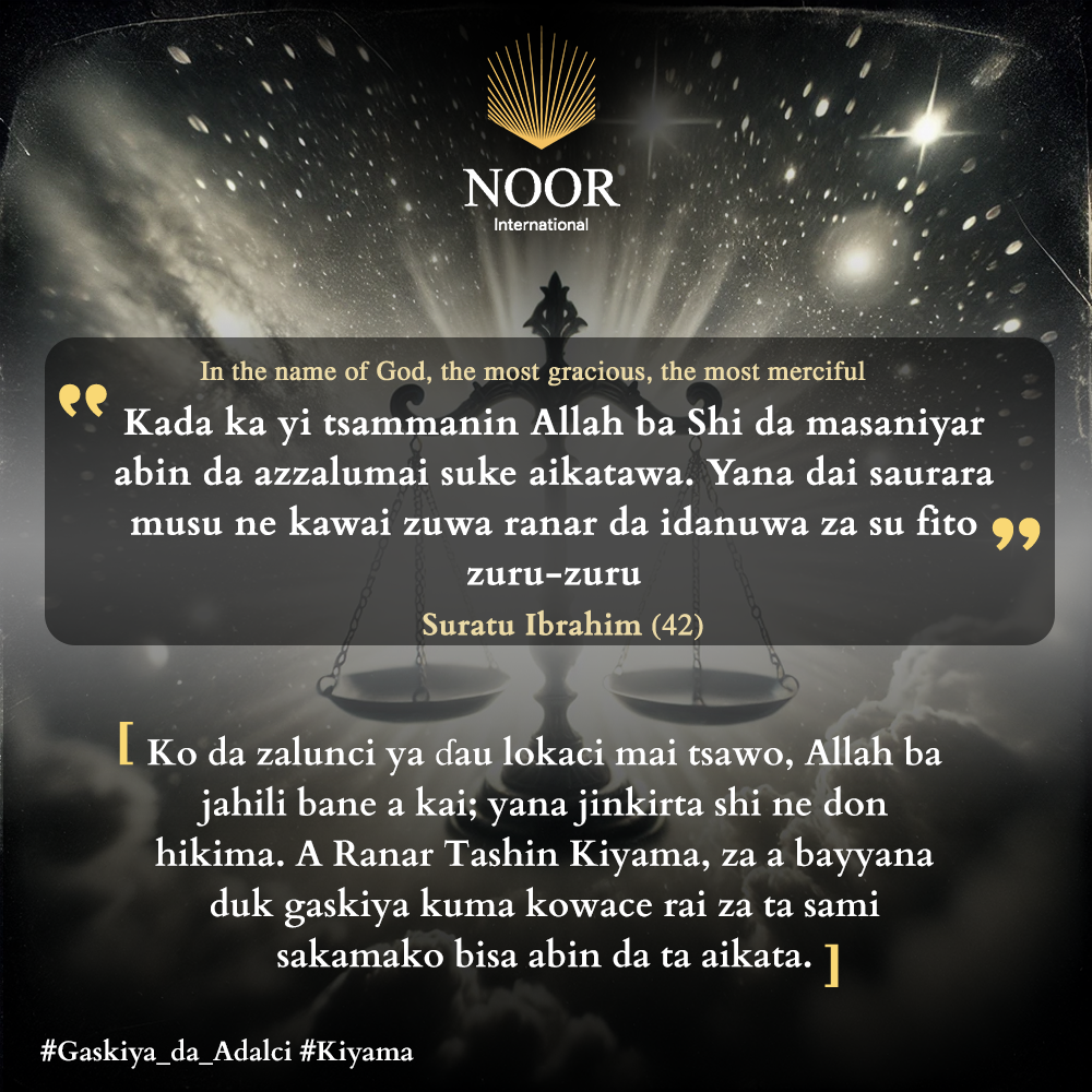 Ko da zalunci ya ɗau lokaci mai tsawo, Allah ba jahili bane a kai; yana jinkirta shi ne don hikima. A Ranar Tashin Kiyama, za a bayyana duk gaskiya kuma kowace rai za ta sami sakamako bisa abin da ta aikata. #Gaskiya_da_Adalci #Kiyama