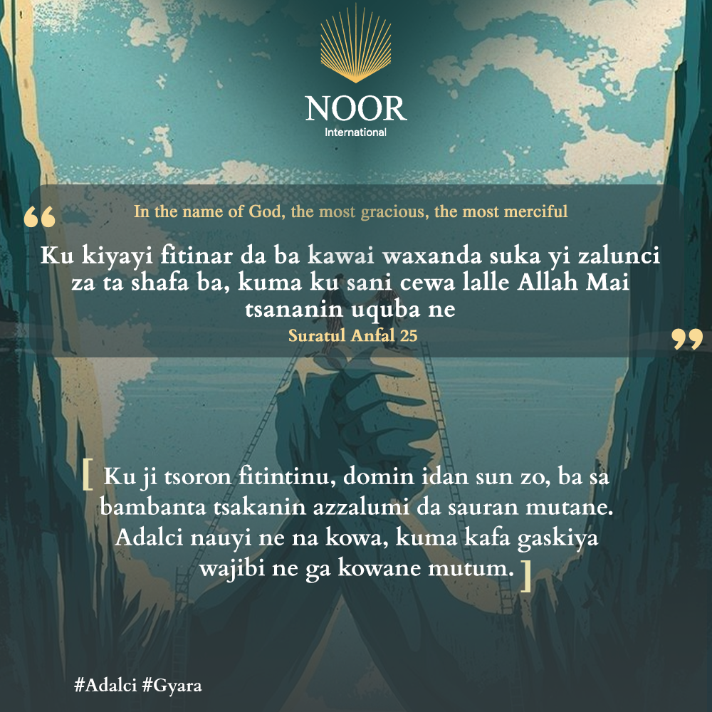 Ku ji tsoron fitintinu, domin idan sun zo, ba sa bambanta tsakanin azzalumi da sauran mutane. Adalci nauyi ne na kowa, kuma kafa gaskiya wajibi ne ga kowane mutum. #Adalci #Gyara