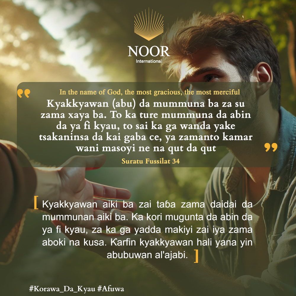 Kyakkyawan aiki ba zai taɓa zama daidai da mummunan aiki ba. Ka kori mugunta da abin da ya fi kyau, za ka ga yadda makiyi zai iya zama aboki na kusa. Ƙarfin kyakkyawan hali yana yin abubuwan al'ajabi. #Korawa_Da_Kyau #Afuwa