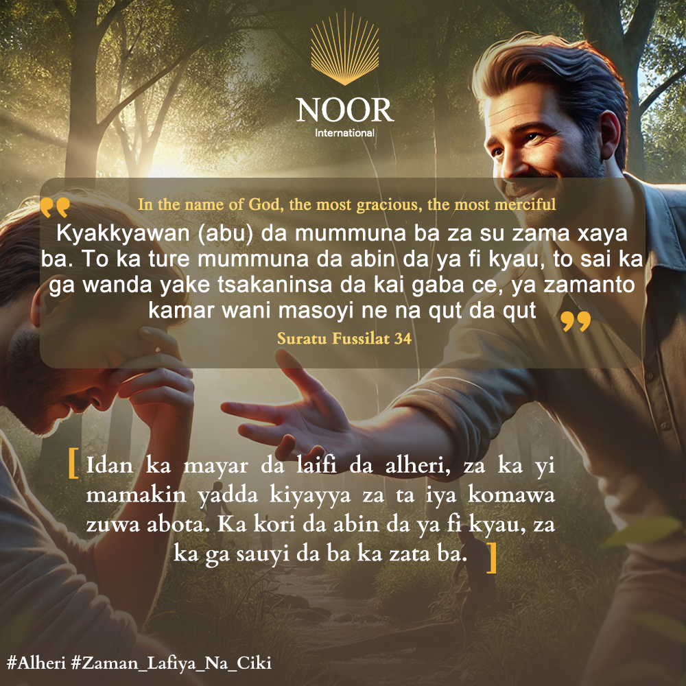 Kyakkyawan aiki ba zai taɓa zama daidai da mummunan aiki ba. Ka kori mugunta da abin da ya fi kyau, za ka ga yadda makiyi zai iya zama aboki na kusa. Ƙarfin kyakkyawan hali yana yin abubuwan al'ajabi. #Korawa_Da_Kyau #Afuwa
