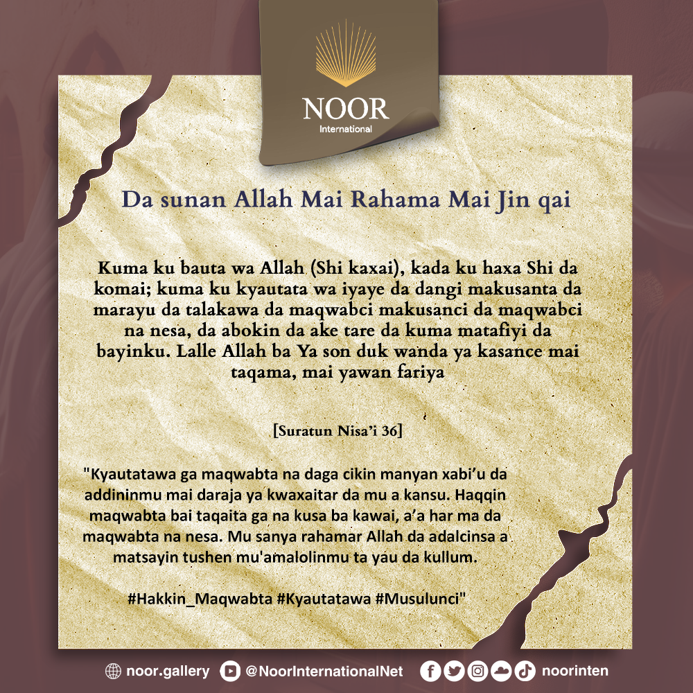 Kyautatawa ga maqwabta na daga cikin manyan xabi’u da addininmu mai daraja ya kwaxaitar da mu a kansu. Haqqin maqwabta bai taqaita ga na kusa ba kawai, a’a har ma da maqwabta na nesa. Mu sanya rahamar Allah da adalcinsa a matsayin tushen mu'amalolinmu ta yau da kullum. #Hakkin_Maqwabta #Kyautatawa #Musulunci"