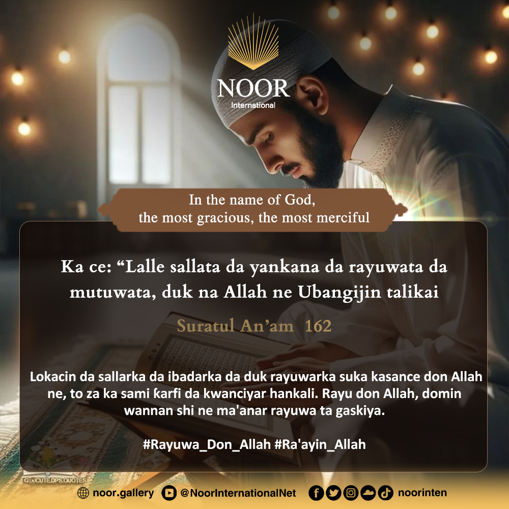 Lokacin da sallarka da ibadarka da duk rayuwarka suka kasance don Allah ne, to za ka sami ƙarfi da kwanciyar hankali. Rayu don Allah, domin wannan shi ne ma'anar rayuwa ta gaskiya. #Rayuwa_Don_Allah #Ra'ayin_Allah