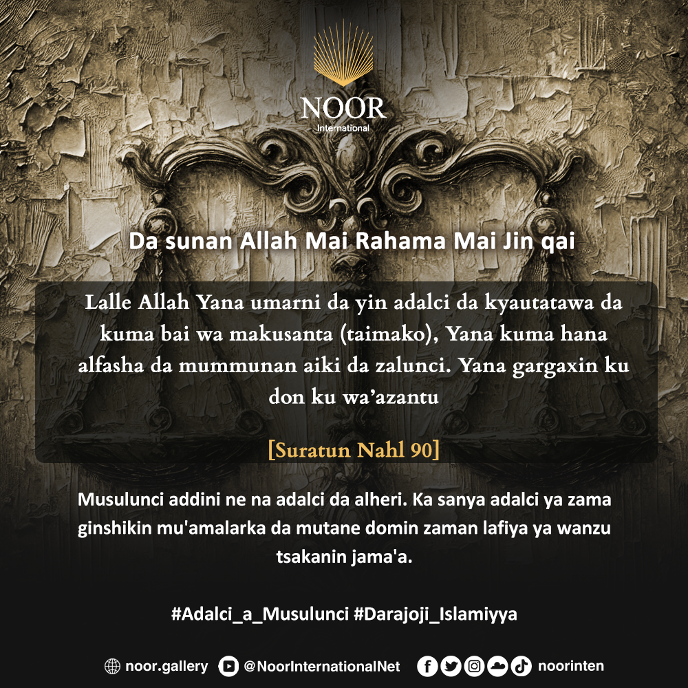 Musulunci addini ne na adalci da alheri. Ka sanya adalci ya zama ginshikin mu'amalarka da mutane domin zaman lafiya ya wanzu tsakanin jama'a.