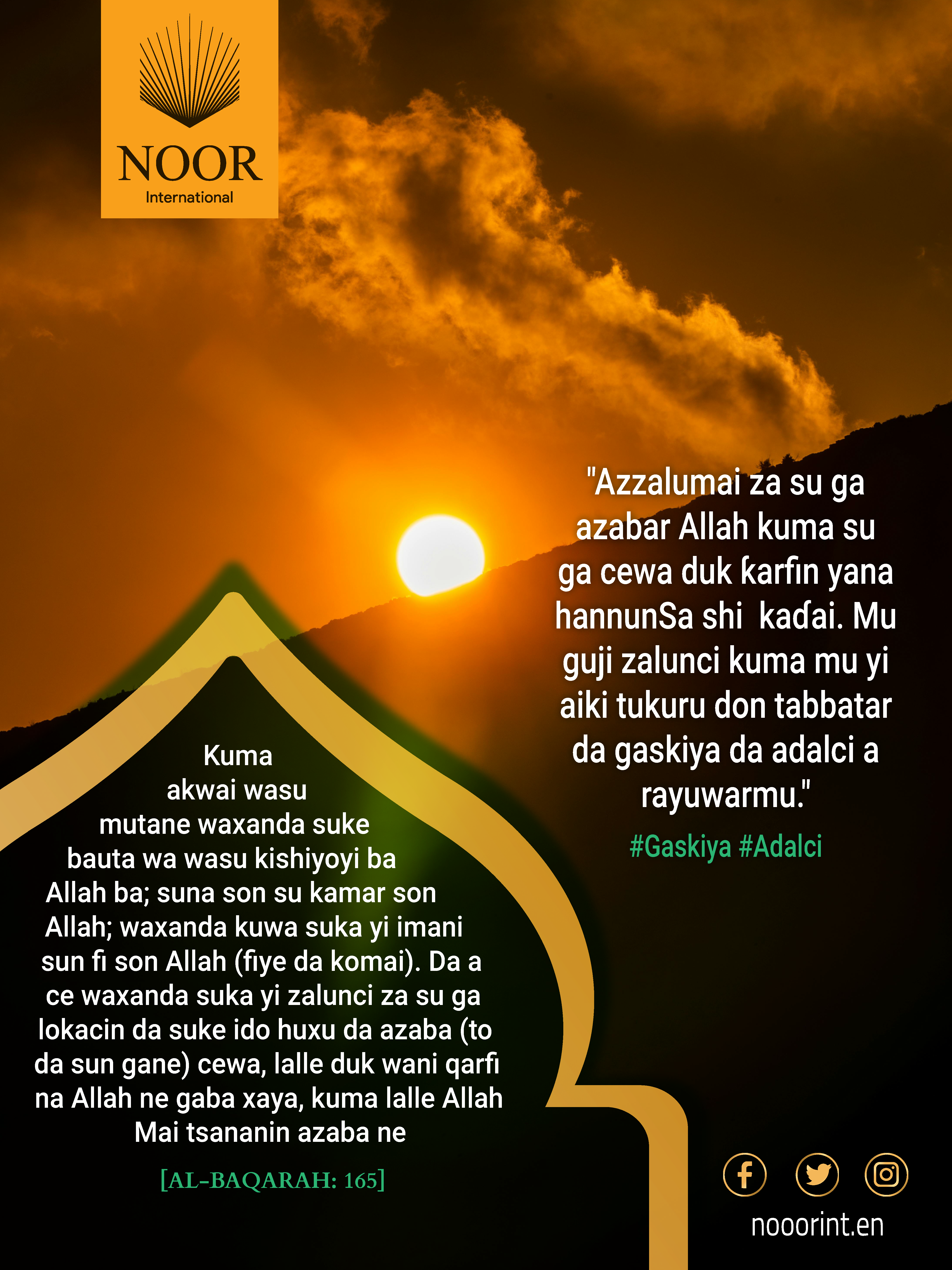 Azzalumai za su ga azabar Allah kuma su ga cewa duk ƙarfin yana hannunSa shi  kaɗai. Mu guji zalunci kuma mu yi aiki tukuru don tabbatar da gaskiya da adalci a rayuwarmu." #Gaskiya #Adalci