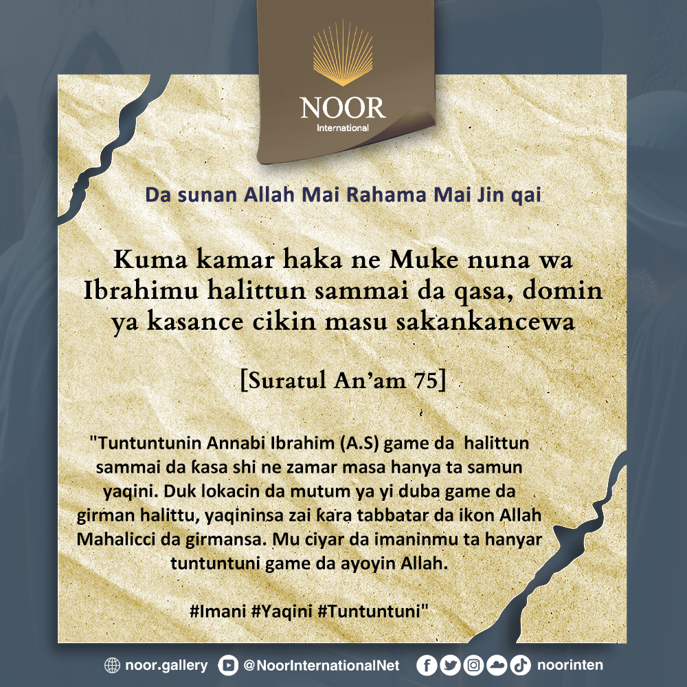 Tuntuntunin Annabi Ibrahim (A.S) game da halittun sammai da ƙasa shi ne zamar masa hanya ta samun yaqini. Duk lokacin da mutum ya yi duba game da girman halittu, yaqininsa zai ƙara tabbatar da ikon Allah Mahalicci da girmansa. Mu ciyar da imaninmu ta hanyar tuntuntuni game da ayoyin Allah. #Imani #Yaqini #Tuntuntuni"
