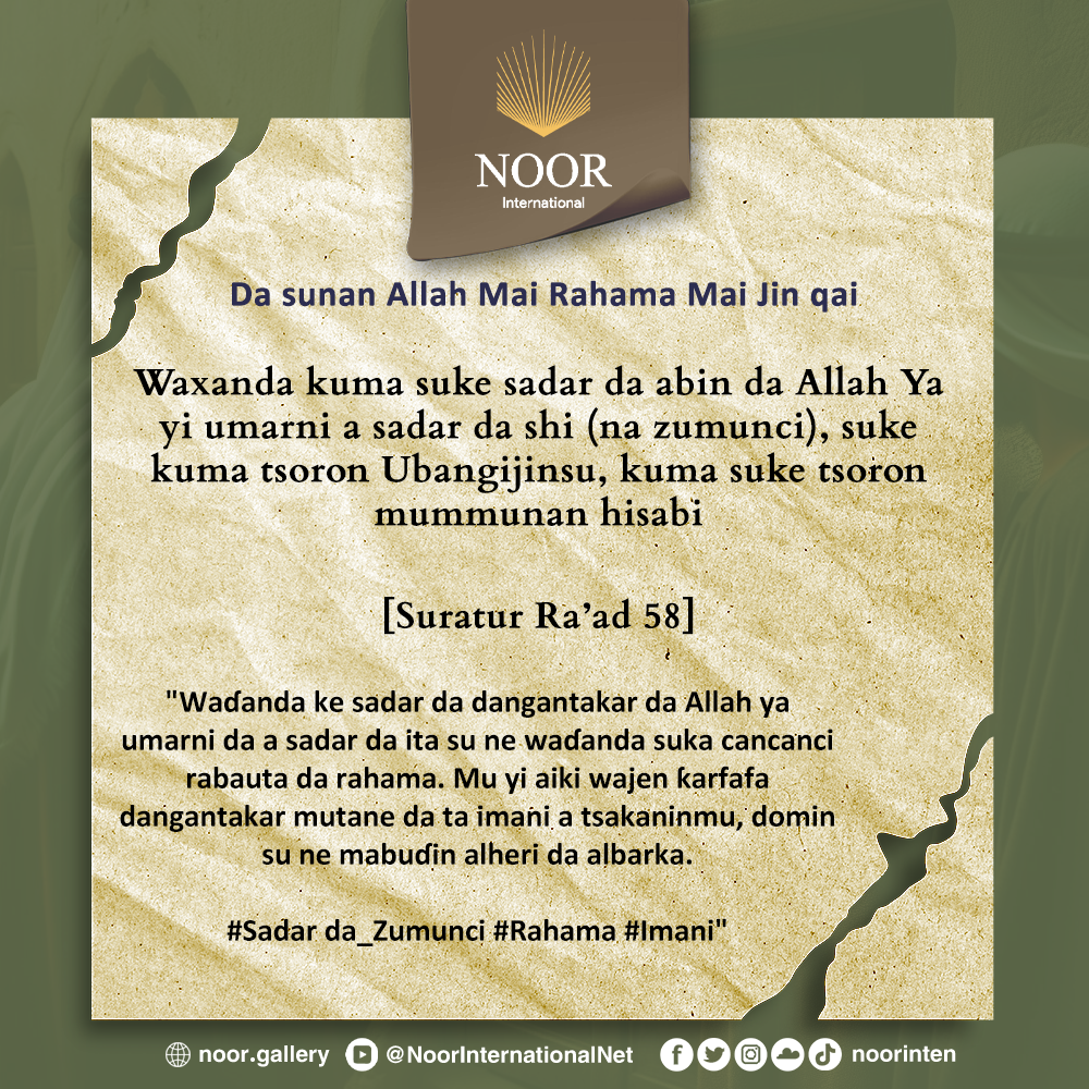 Waɗanda ke sadar da dangantakar da Allah ya umarni da a sadar da ita su ne waɗanda suka cancanci rabauta da rahama. Mu yi aiki wajen ƙarfafa dangantakar mutane da ta imani a tsakaninmu, domin su ne mabuɗin alheri da albarka. #Sadar da_Zumunci #Rahama #Imani"