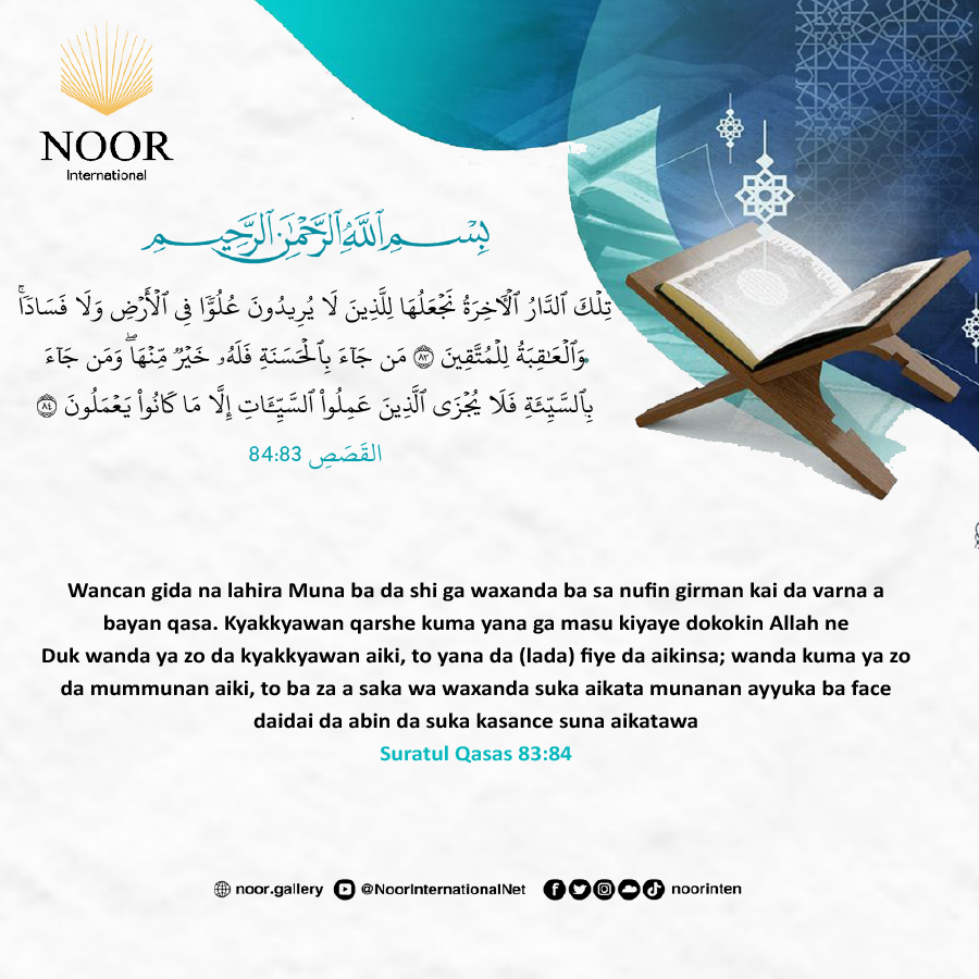Wancan gida na lahira Muna ba da shi ga waxanda ba sa nufin girman kai da varna a bayan qasa. Kyakkyawan qarshe kuma yana ga masu kiyaye dokokin Allah ne