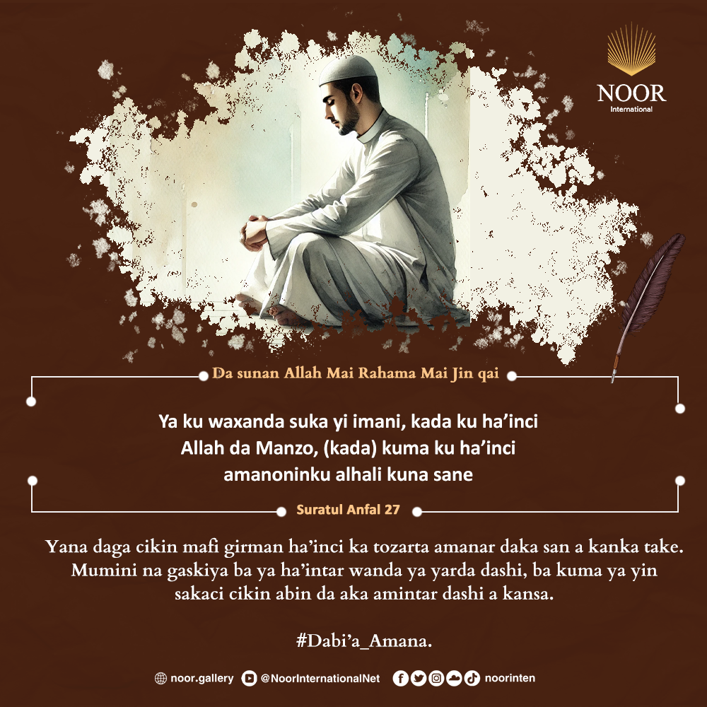 Yana daga cikin mafi girman ha’inci ka tozarta amanar daka san a kanka take.Mumini na gaskiya ba ya ha’intar wanda ya yarda dashi, ba kuma ya yin sakaci cikin abin da aka amintar dashi a kansa.