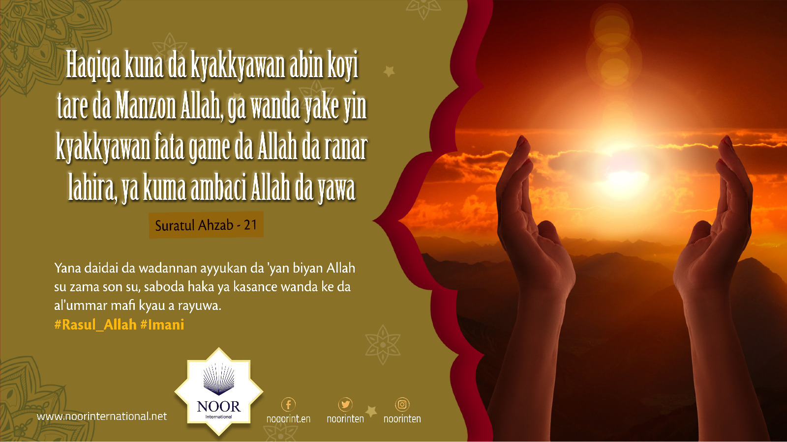 Haqiqa kuna da kyakkyawan abin koyi tare da Manzon Allah, ga wanda yake yin kyakkyawan fata game da Allah da ranar lahira, ya kuma ambaci Allah da yawa(Suratul Ahzab-21)